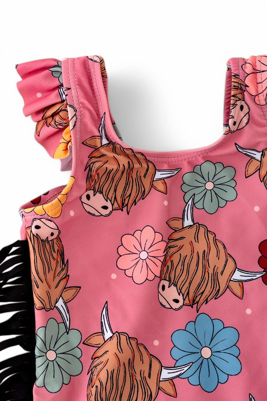 Highland cow & floral girl swimsuit.