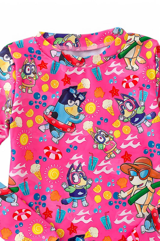 Pink cartoon printed swim set.
