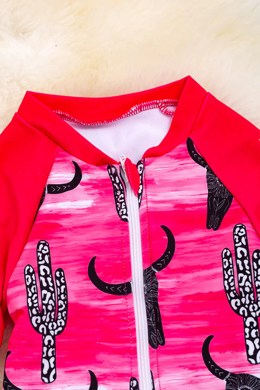 Bull skull long sleeve bathing suite with zipper.