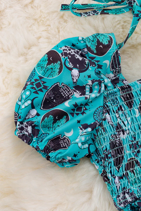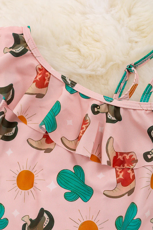 "Howdy Howdy" Western printed swimsuit.