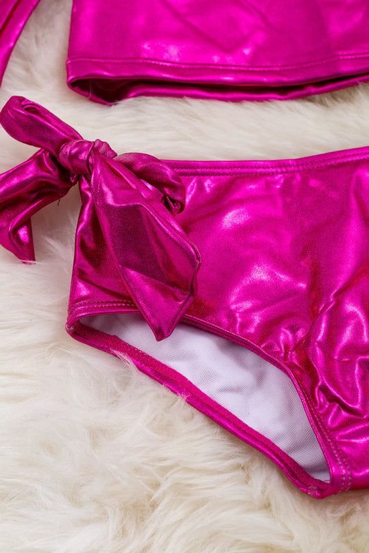 Fuchsia shimmery long sleeve bathing set.