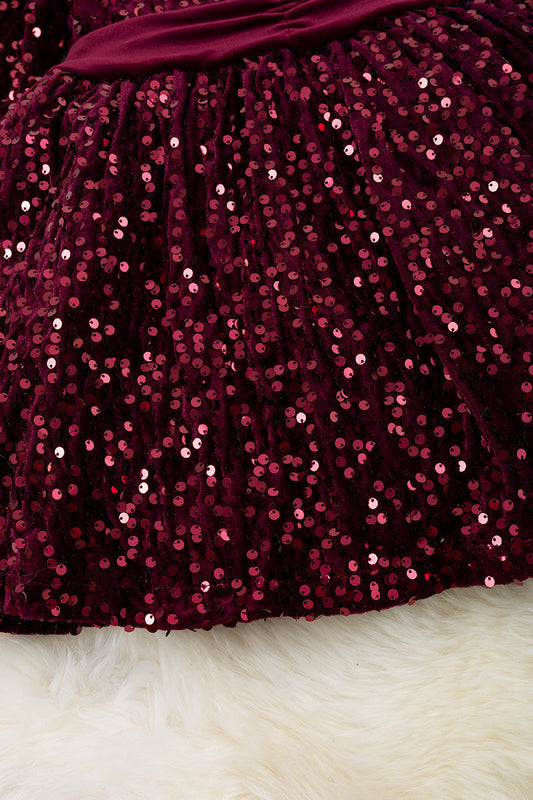 Holiday Long Sleeve Dress w/ Wine Sequins