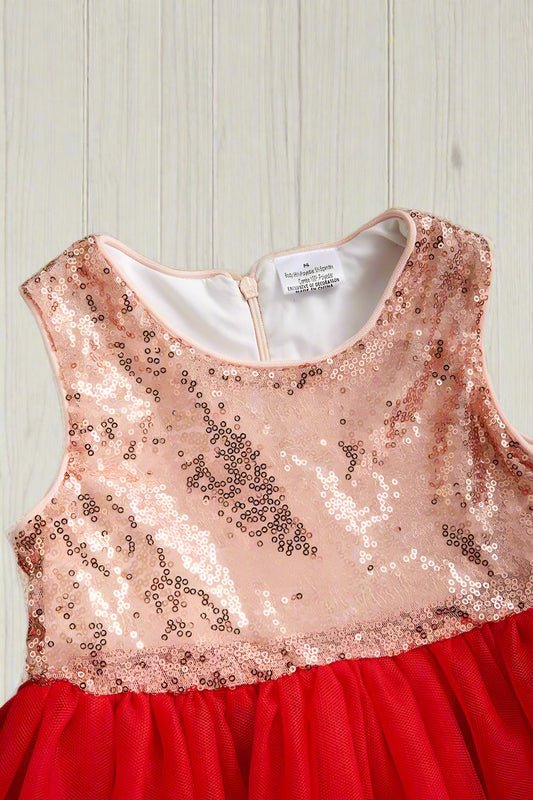 Pink Sequin Dress w/ Tiered Tulle Skirt