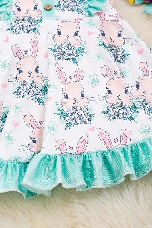 Pink Smocked Dress w/ Printed Character and Neon Green Detail
