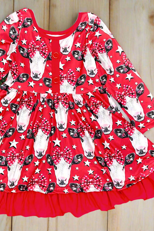 Pink Dolly Print Dress w/ Pink Ruffle Trim