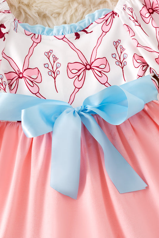 Pink Coquette western ruffle dress with blue front bow. DRG52448