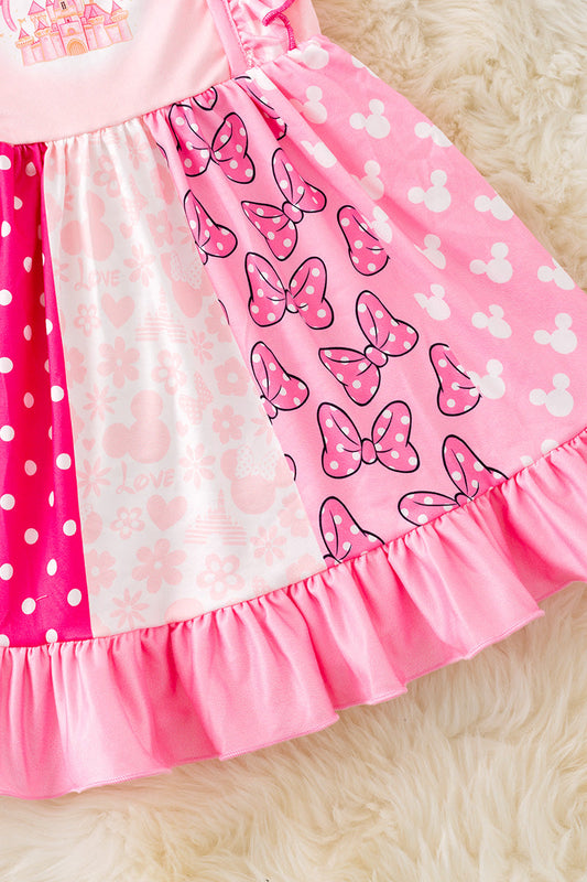 Plaid cherry applique on pink corduroy dress & red under shirt.