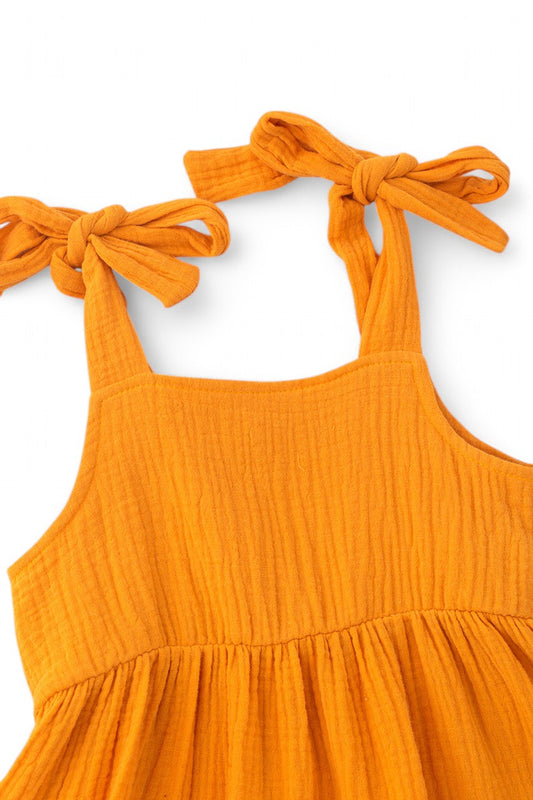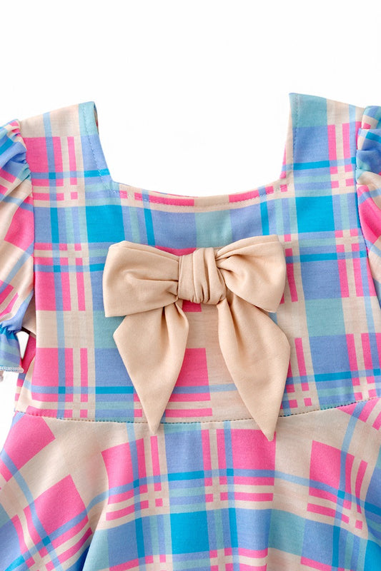 Plaid Blue printed girls dress with yellow angel sleeves.