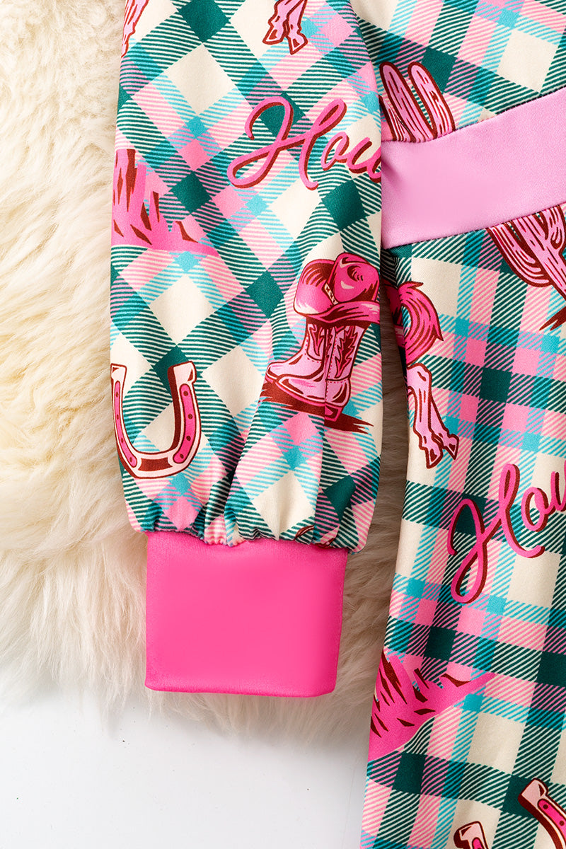 Howdy plaid printed dress.(Western) DRG53438