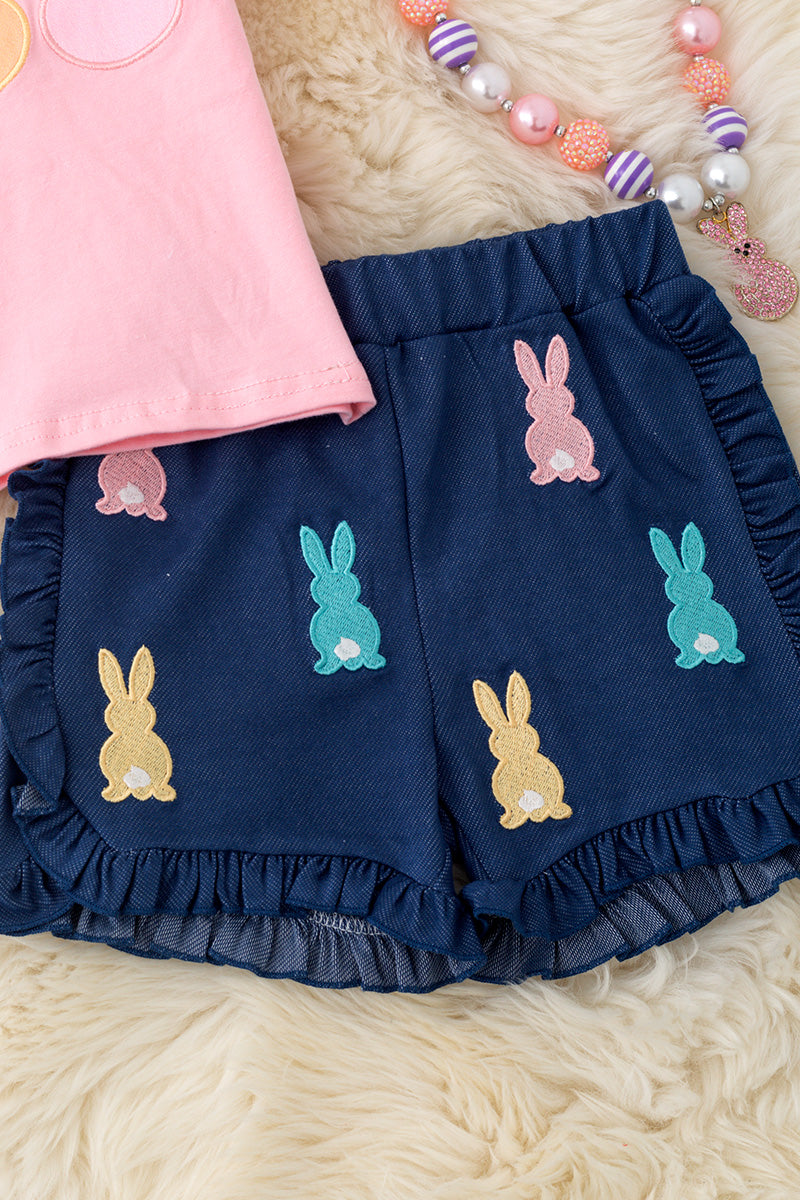 Peep applique bubble sleeve top & dark blue ruffle shorts. OFG50166 JEAN - $11.99